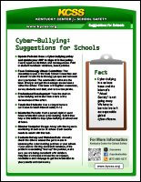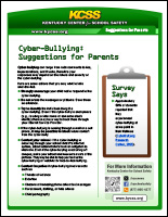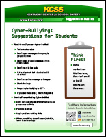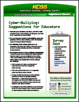 Educate your students, teachers, and other staff members about cyber-bullying, its dangers, and what to do if someone is cyber-bullied. (KCSS Handout)
