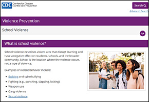 CDC – School violence describes violent acts that disrupt learning and have a negative … publications, data sources, and prevention resources for school violence. School violence describes violent acts that disrupt learning and have a negative effect on students, schools, and the broader community. School is the location where the violence occurs, not a type of violence.