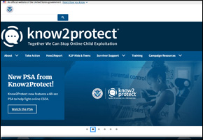 U.S. Department of Homeland Security – Know2Protect is a national public awareness campaign developed by the Department of Homeland Security to educate and empower children, teens, parents, trusted adults and policymakers to prevent and combat online child sexual exploitation and abuse (CSEA); explain how to report online enticement and victimization; and offer response and support resources for victims and survivors of online child sexual exploitation and their supporters.